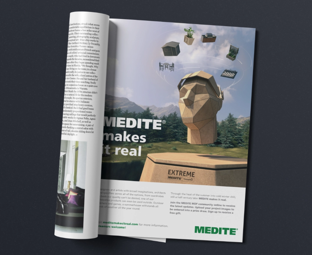 MEDITE has been a leading brand within the wood panel industry. However, with more competitors entering the market, they wanted to reinforce and strengthen their brand by presenting MEDITE positively and creating excitement amongst key target groups. Their primary message needed to be: MEDITE is a premium and innovative MDF. An imaginative and impactful ad campaign was needed. KPI targets were set – refer to results for details.
